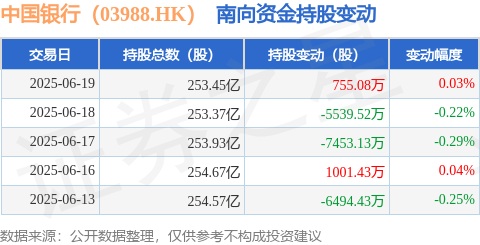 本站消息,6月19日南向资金增持755.08万股中国银行(03988.HK)。近5个交易日中,获南向资金减持的有3天,累计净减持1.77亿股。近20个交易日中,获南向资金增持的有12天,累计净增持7918.95万股。截至目前,南向资金持有中国银行(03988.HK)253.45亿股,占公司已发行普通股的30.3%。